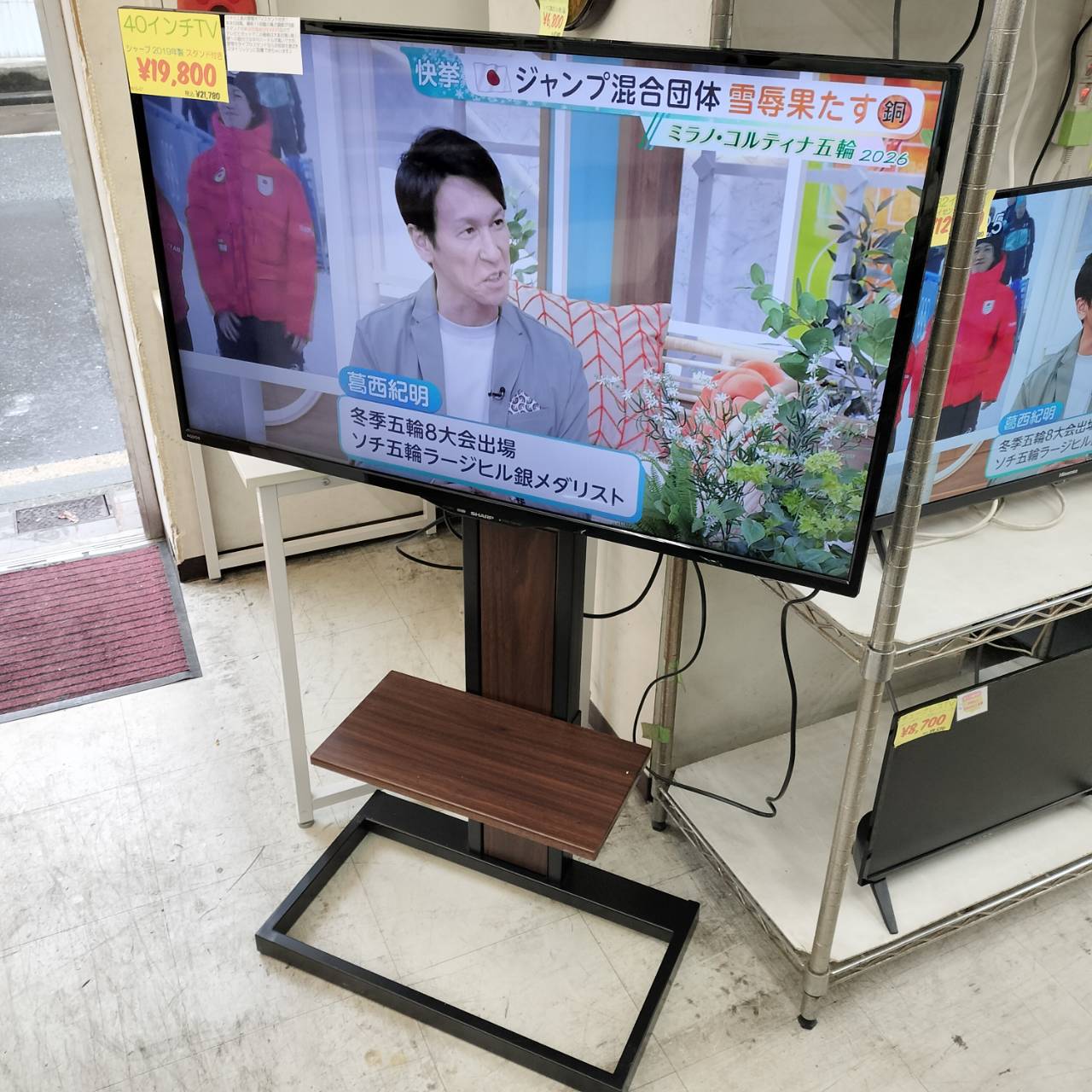 【¥19,800(税抜) 40型テレビ SHARP 2019年製&壁寄せスタンド(ハヤミ工産KF‐260B)set】